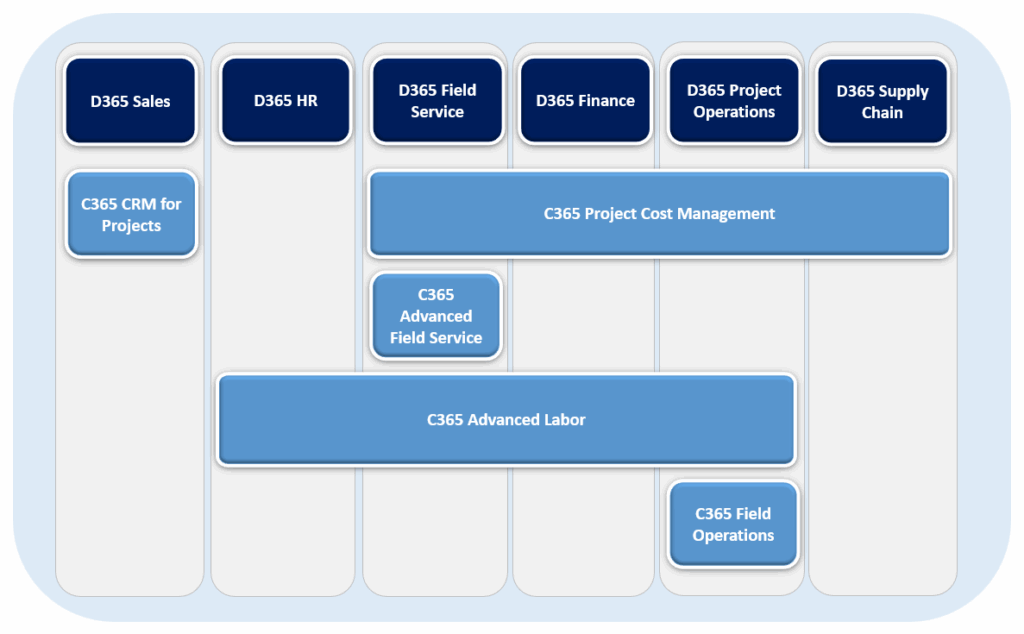 Dynamics 365 delivers new purpose-built apps that work seamlessly together to help manage specific business functions across Finance, Field Service, Project Operations, Sales, Supply Chain Management, HR along with Business Intelligence and Customer Insights.